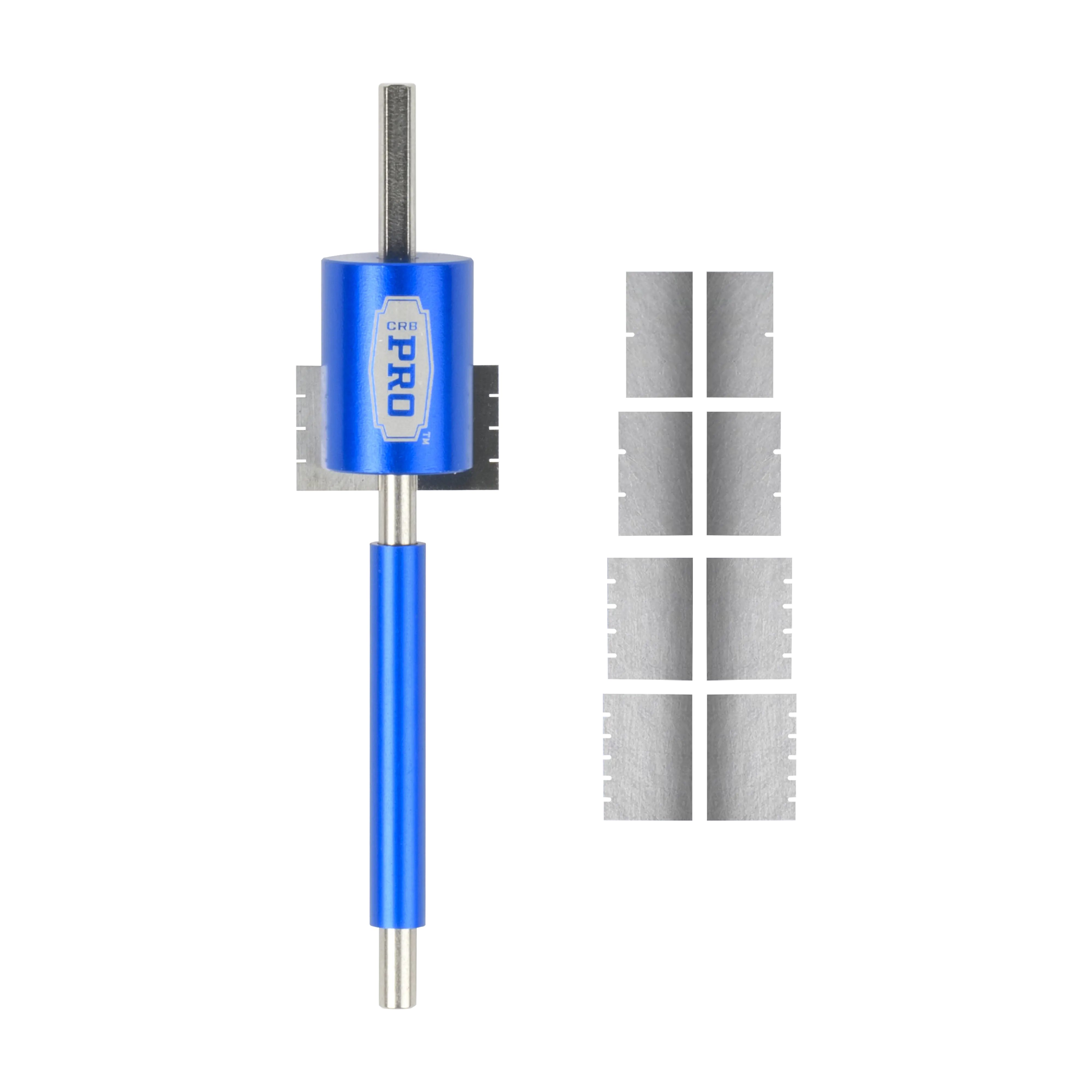 What sets this tool apart is its extended shaft, which serves to stabilize the cutting process. This feature ensures that rod builders can consistently achieve flawless inlets with every use. Beautifully finished in CRB PRO Blue anodized aluminum, this set includes a zippered case, a hex key for blade changes and extra set screws._x000D_