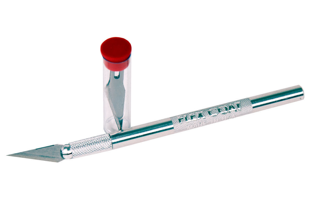 Indispensable for trimming thread tie-offs. Useful in removing damaged guides in rod repair. Comes with 6 surgically sharp steel blades and safety cover. Deeply knurled grip for precision and safety.